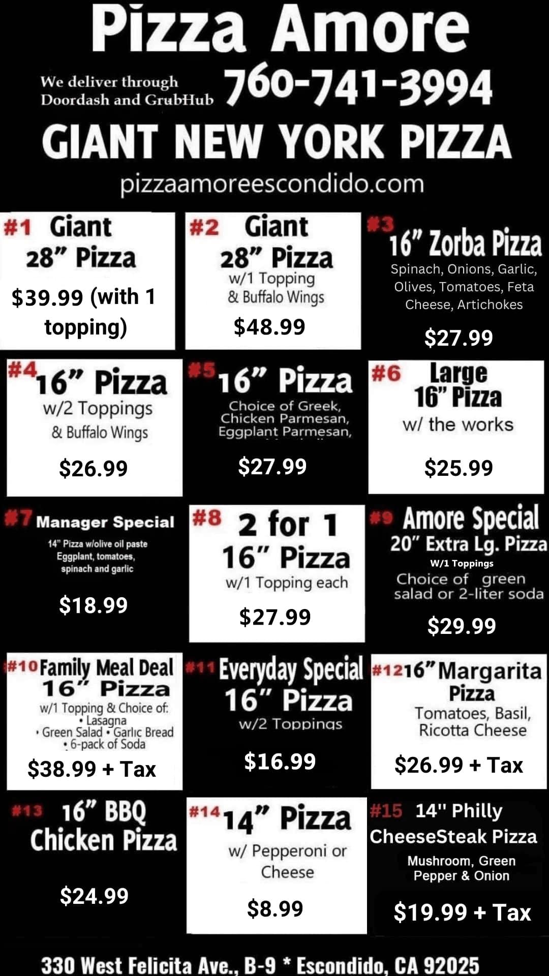 Pizza Amore - Escondido, CA - About Us - Our Menu